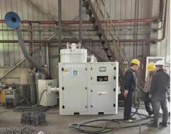 氣流受迫向上運(yùn)動(dòng),經(jīng)過(guò)主過(guò)濾器。主過(guò)濾器具有一定的阻燃性,防止設(shè)備內(nèi)燃。凈化后的空氣可以循環(huán)回車間。主過(guò)濾器達(dá)到一定飽和值后,通過(guò)脈沖反吹系統(tǒng),將吸附于主過(guò)濾器表面的細(xì)小顆粒吹打掉落至底部集塵盒內(nèi)。